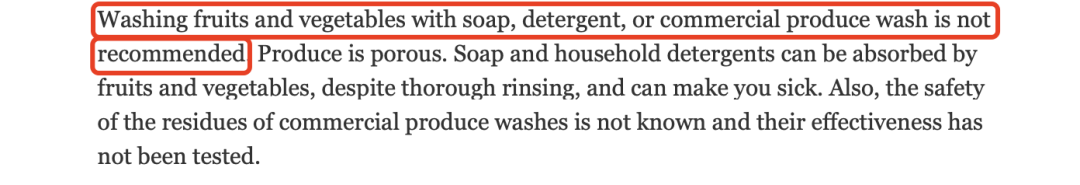 所以香港食品安全中心[7]和美国食品药品监督管理局(FDA)[9],都不建议使用洗涤剂清洗蔬果。