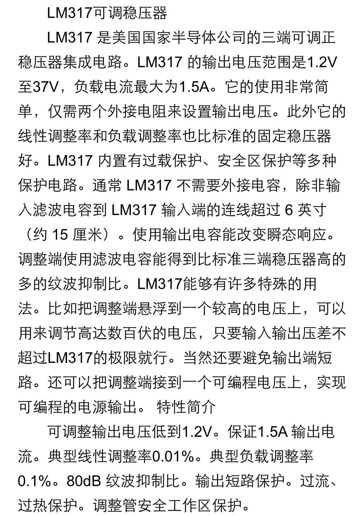 LM317工作电流1.5A;LM338k工作电流为5A,LM350工作电流为3A。