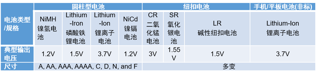图1:常见电池类型