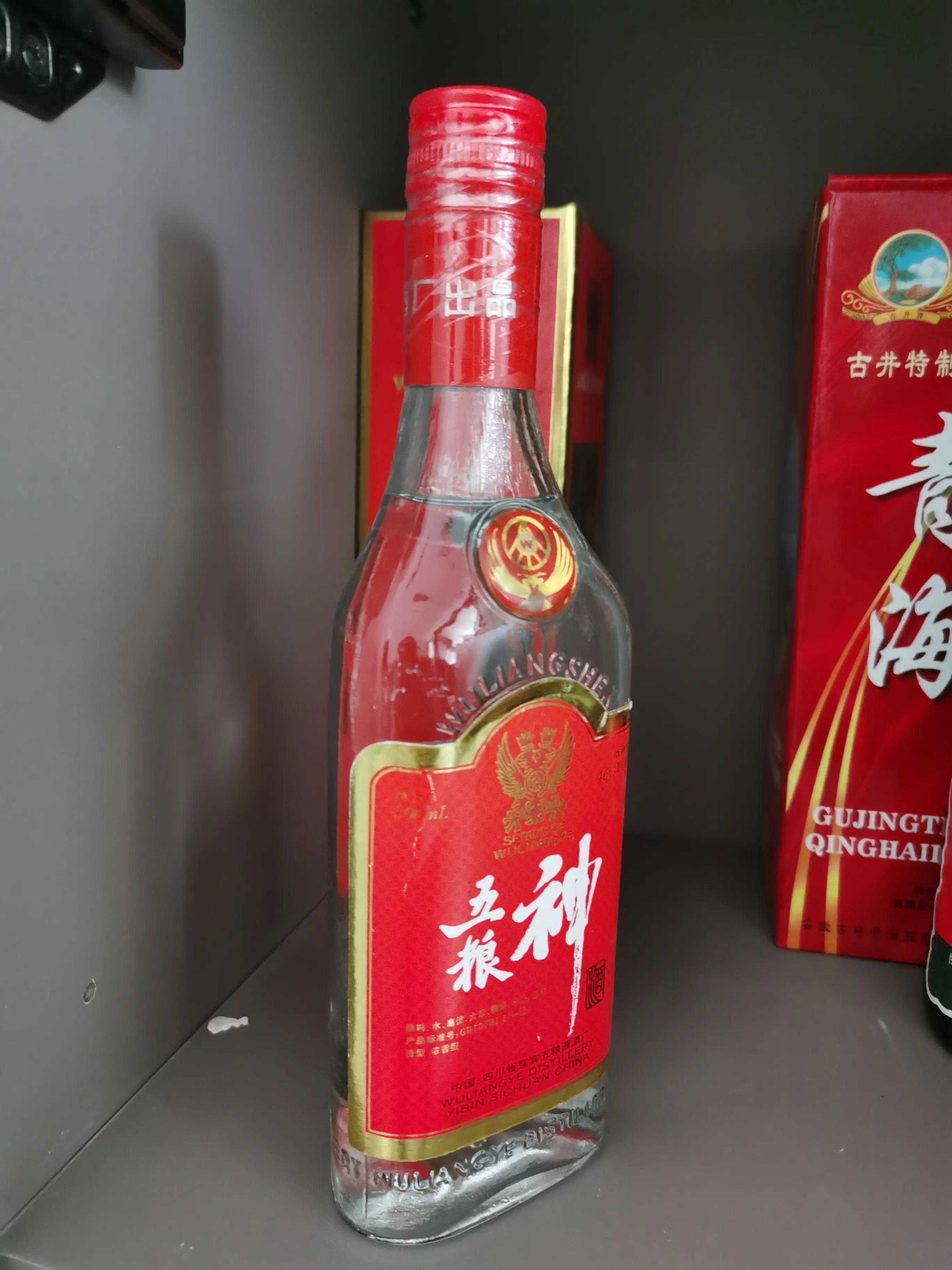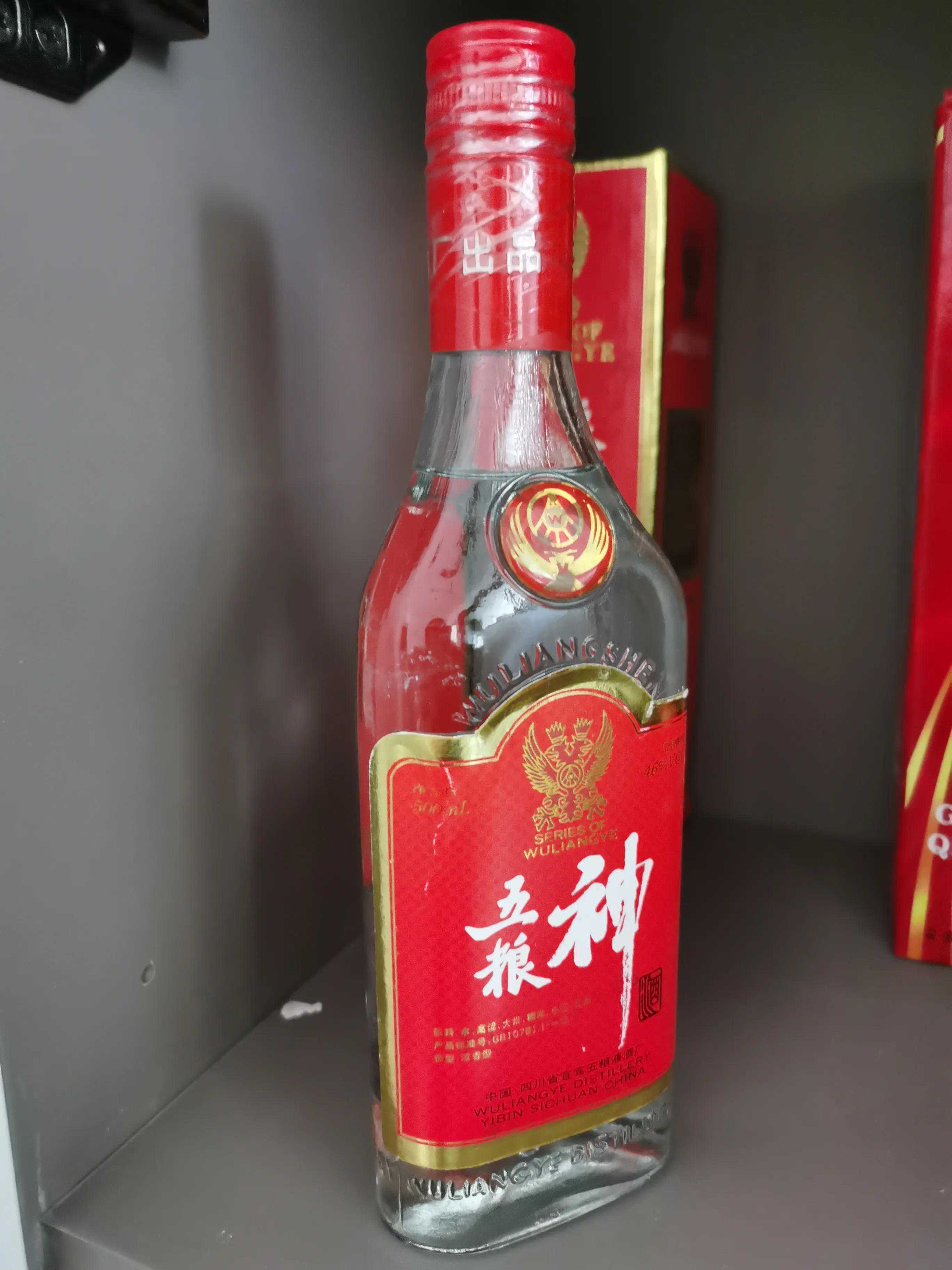 于是乎,我们把整个库房所有的东西挪一遍,犄角旮旯都不放过,当然,前提是这种小商店的库房面积一般在十平以下,那天真的是有不少好货,最好的应该就是几瓶五粮神,一看到这个眼前一亮,因为这库房被先到的前辈翻过一次,高度数酒都被拿完了。在酒友圈,茅台五粮液的酒,即使是系列酒,低度数的也会拿,尤其是五粮神这种特殊形状的。估计这几瓶藏的太深,成了漏网之鱼,让我们捡漏了。