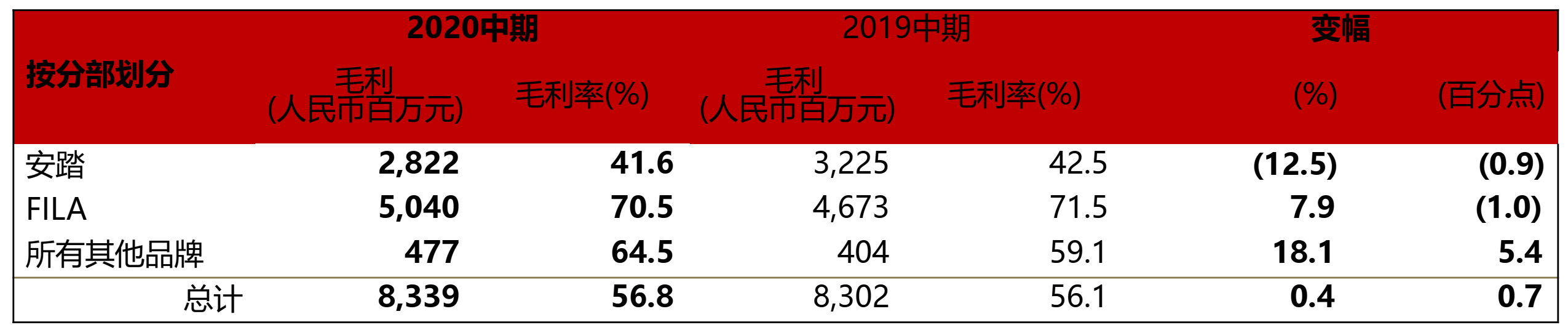 从毛利率来看,2020年上半年FILA毛利率达到70.5%,远高于主品牌安踏41.6%。