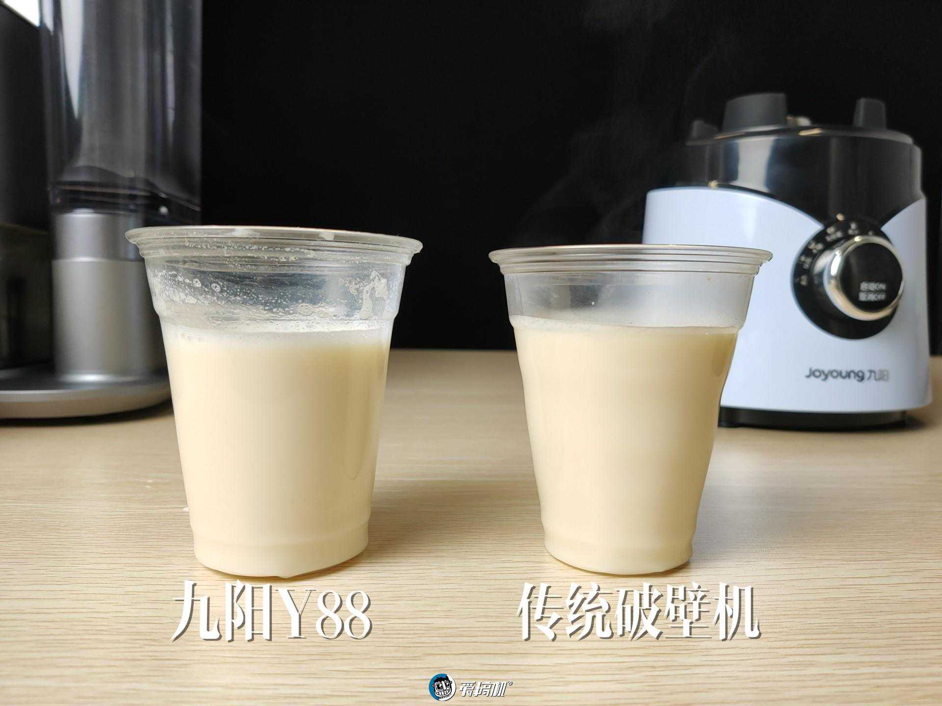 打出来的豆浆肉眼观察并没有什么明显区别,在口感方面,我们也找来了办公室的编辑进行了盲测,不告诉他们他们是哪台破壁机打的,最终结果出乎意料的一致,都觉的是九阳Y88打的豆浆更细滑,Y88打出来豆浆的豆子粒径更细,但其实传统破壁机打出来的口感就已经不错了,只是Y88更好。