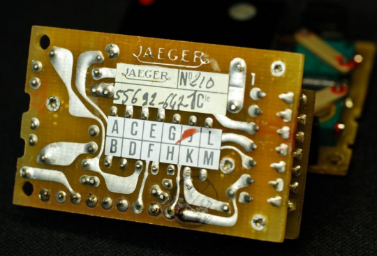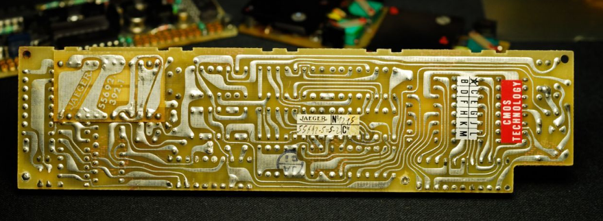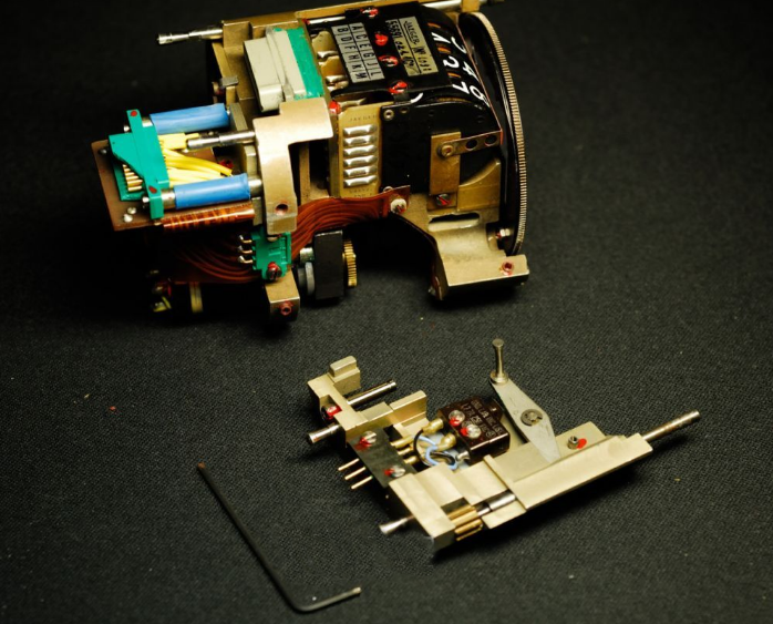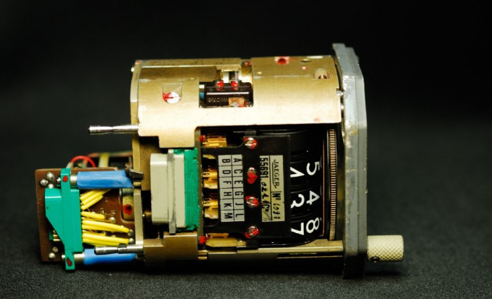 可以看到模块上基本都是陶瓷封装的小规模集成电路,生产于1980年左右。此时的航电设备正处在机械式到电子的过渡时期。由于显示技术和通讯总线技术还不成熟,此时的仪表往往采用模拟信号,由电路处理后再通过一些特殊的机电显示器件,以比较接近传统机械式仪表的指针/转轮等方式呈现。