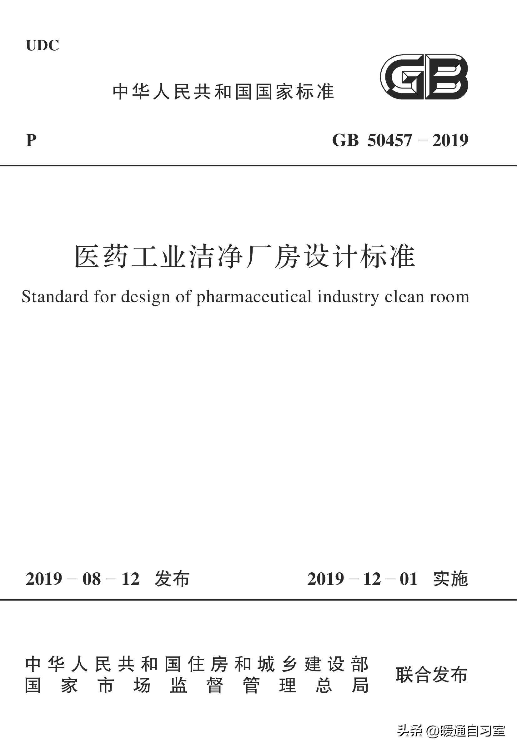 《医药工业洁净厂房设计标准》GB50457-2019