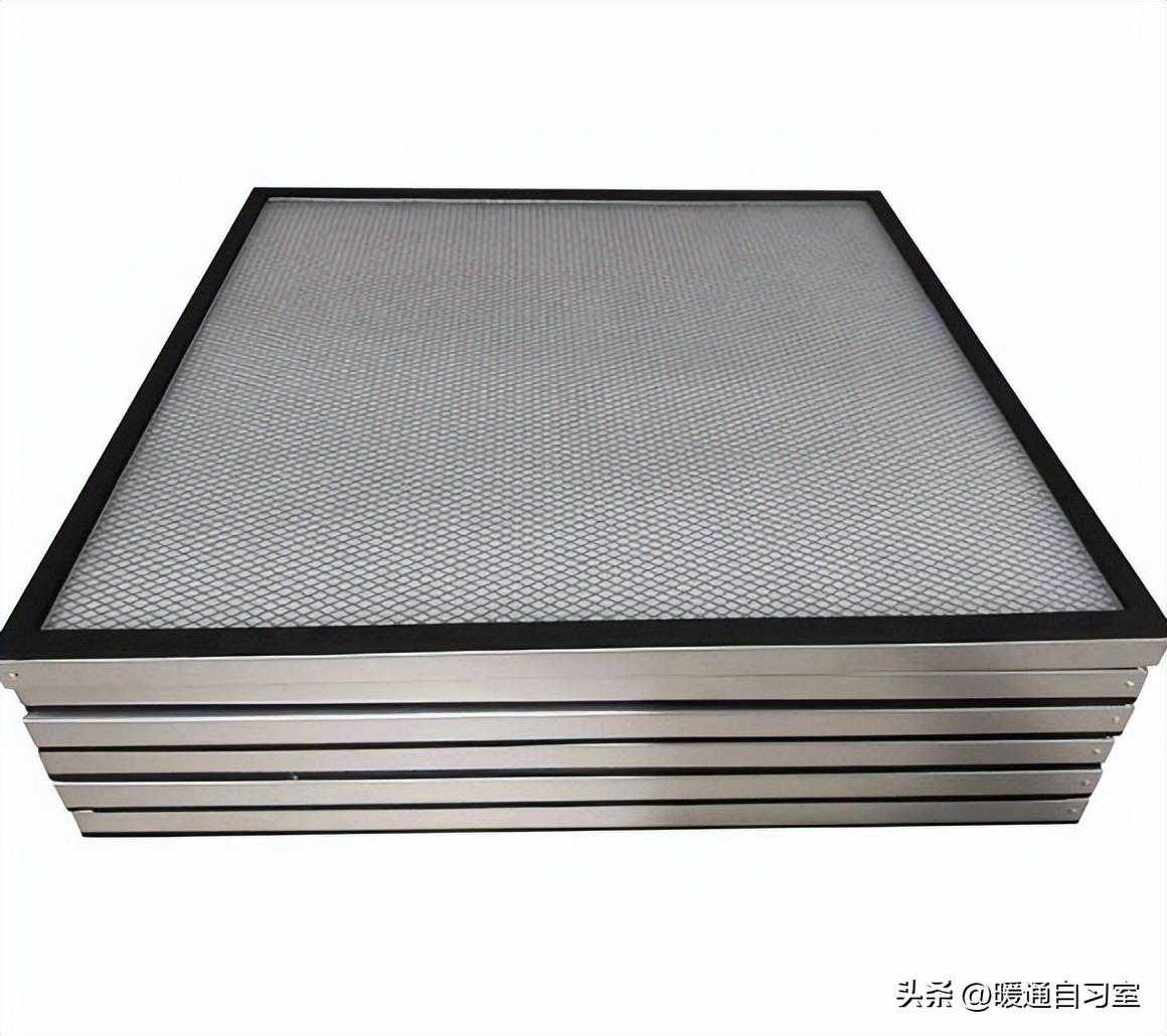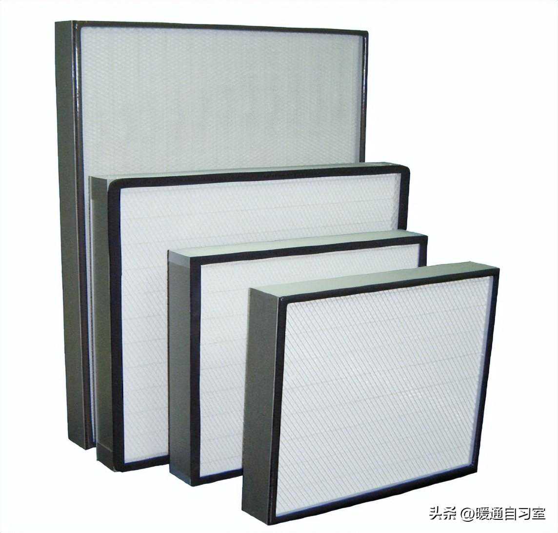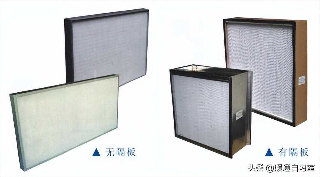 有隔板的高效过滤器,滤纸由瓦楞状的隔板隔开,保证气流在多褶滤纸间的流动,过滤材料是玻璃纤维滤纸,隔离材料为铝箔、白卡纸;而无隔板高效过滤器其实也并非无分隔物,其过滤材料也是玻璃纤维滤纸。