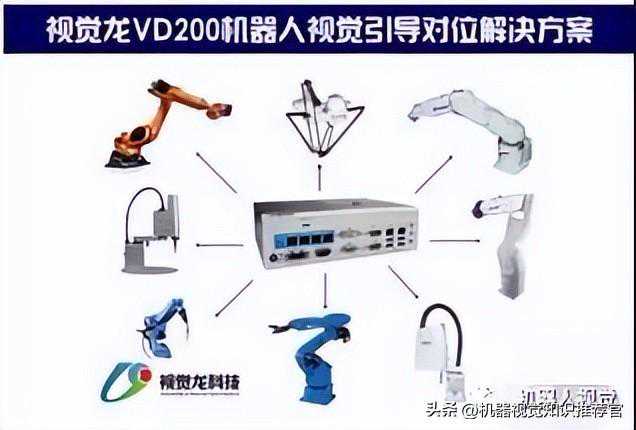 现场有两个振动盘,振动盘1作用是把玩偶振动到振动盘2中,振动盘2作用是把玩偶从反面振动为正面。该应用采用了深圳视觉龙公司VD200视觉定位系统,该系统通过判断玩偶正反面,把玩偶处于正面的坐标值通过串口发送给机器人,机器人收到坐标后运动抓取产品,当振动盘中有很多玩偶处于反面时,VD200视觉定位系统需判断反面玩偶数量,当反面玩偶数量过多时,VD200视觉系统发送指令给振动盘2把反面玩偶振成正面。