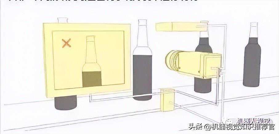 当每个啤酒瓶移动经过检测传感器时,检测传感器将会触发视觉系统发出频闪光,拍下啤酒瓶的照片。采集到啤酒瓶的图像并将图像保存到内存后,视觉软件将会处理或分析该图像,并根据啤酒瓶的实际填充液位发出通过-未通过响应。如果视觉系统检测到一个啤酒瓶未填充到位,即未通过检测,视觉系统将会向转向器发出信号,将该啤酒瓶从生产线上剔除。操作员可以在显示屏上查看被剔除的啤酒瓶和持续的流程统计数据。