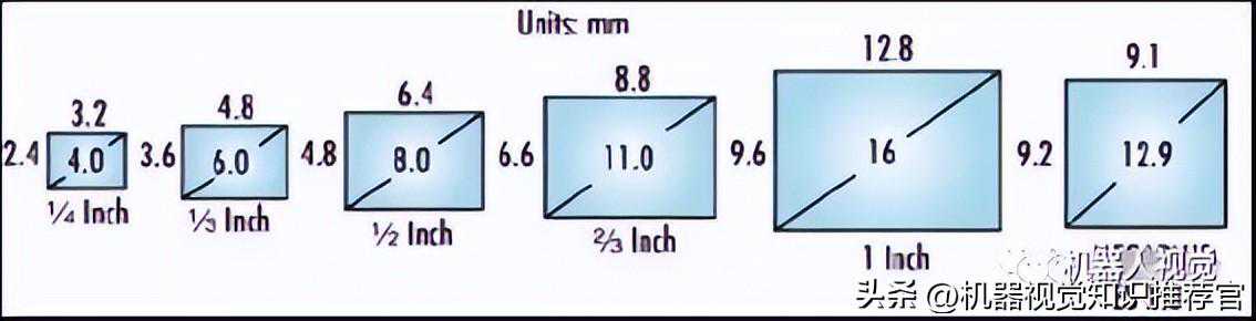 图像传感器感光区域的面积大小。这个尺寸直接决定了整个系统的物理放大率。如:1/3“、1/2”等。绝大多数模拟相机的传感器的长宽比例是4:3(H:V),数字相机的长宽比例则包括多种:1:1,4:3,3:2等。