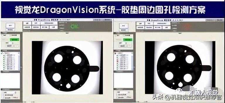 该应用采用了深圳**龙公司的DragonVision视觉系统方案,使用两个相机及光源配合机械设备,达到每次检测双面8个产品,每分钟检测大约1500个。当出现产品不良时,立刻报警停机,保证了产品的合格率和设备的正常运行,提高生产效率。