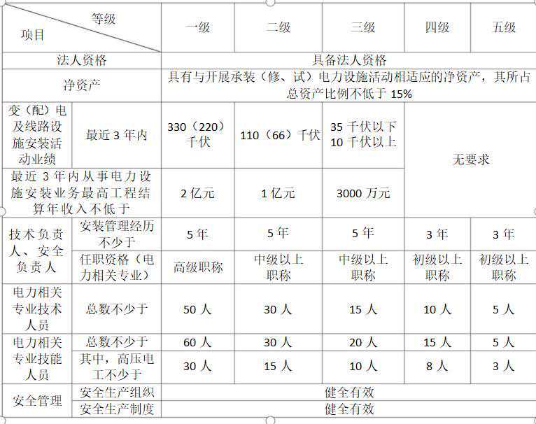 “不少于”均包含本数。例如:“取得五级承装类许可证的,