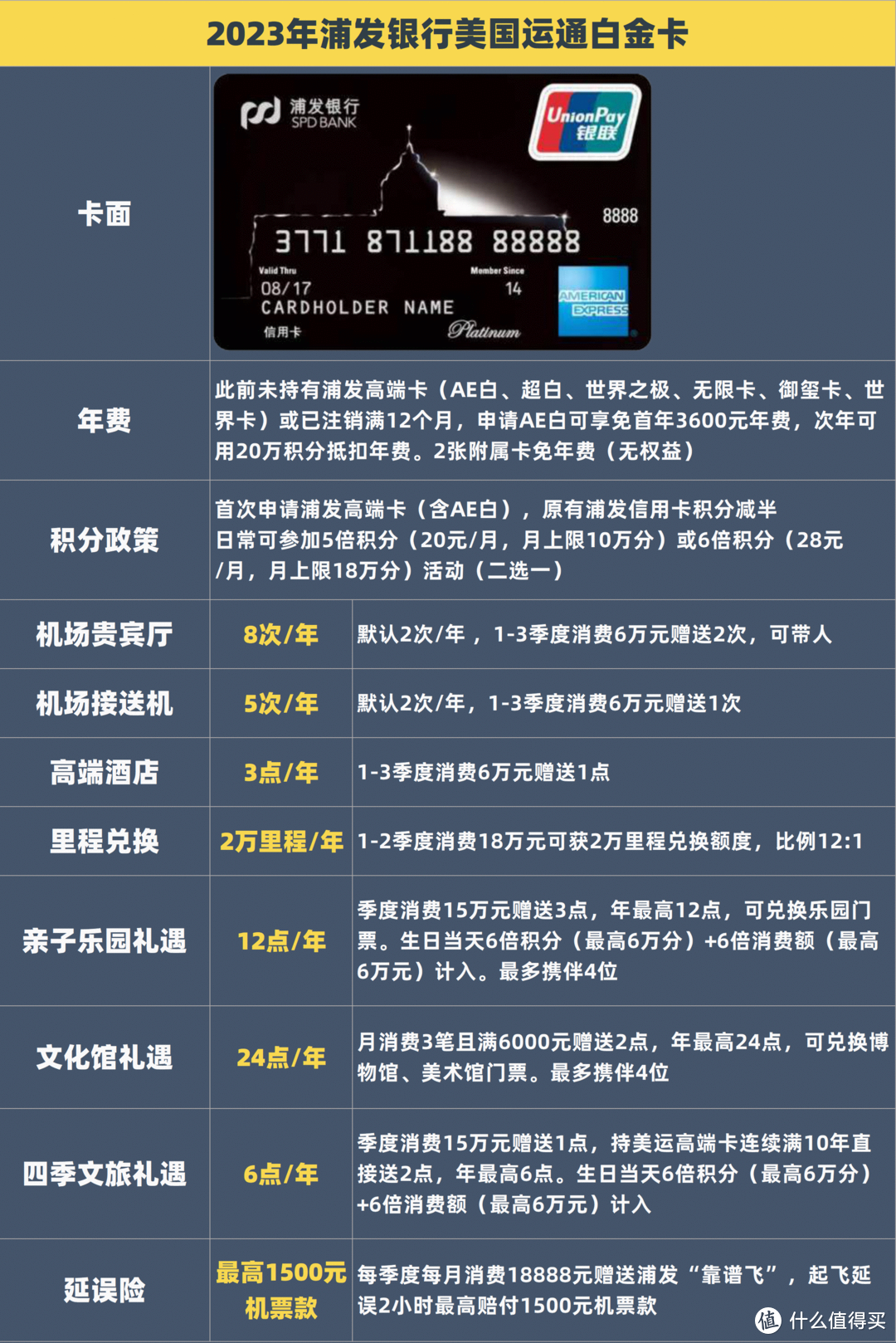 点评:目前最炙手可热的大白金信用卡。权益丰富,足够满足一般小伙伴的出行权益需求。去年末建行公布了大山白23年的权益活动,好久没变的权益终于“动一动”了:酒店方面,季度消费满6万可获赠2次酒店权益;季度消费满3万可获赠2次运动权益。算是正向升级。