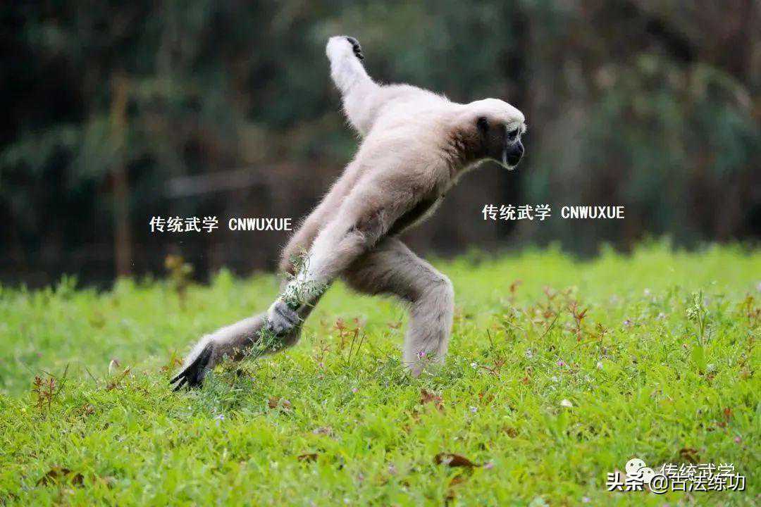 下伸肩为土转换水之象,脾亦有运化水湿之能。可以练出猿猴缩身的奇妙身法。