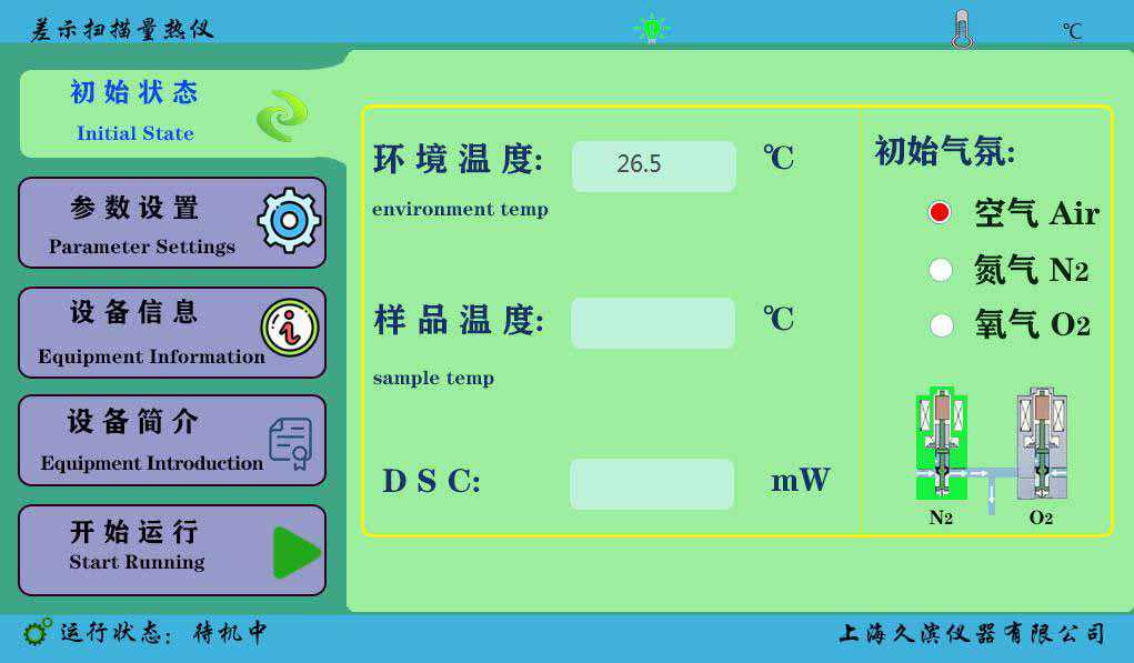 3、打开软件,初始界面为氧化诱导期测试界面,到熔点(热焓)测量界面。