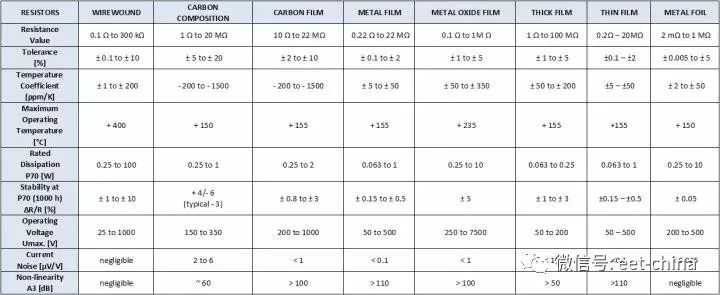 常见类型的电阻的主要参数的对比如下图所示,出货量最大的应该是厚膜电阻和金属膜电阻。