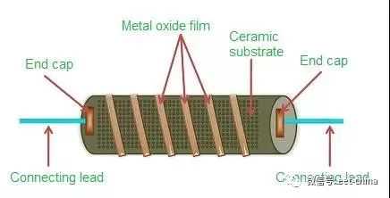 与金属膜电阻结构类似,金属氧化物膜主要是在陶瓷棒形成一层锡氧化物膜,为了增加电阻,可以在锡氧化物膜上加一层锑氧化物膜,然后在氧化物膜上加工出螺旋沟槽来精确控制电阻。金属氧化物膜电阻最大的优势就是耐高温。