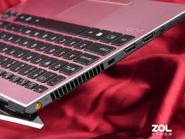 超轻的重量、小巧的机身再加上我手上这台为樱花粉配色,特别适合女性用户。整体设计也非常注重细节,VAIOSX12延续了经典的下沉式转轴设计,打开屏幕之后转轴下沉,支起机身。这一设计可以让机身与桌面呈现一定角度,打字的时候更舒服,符合人体工程学。