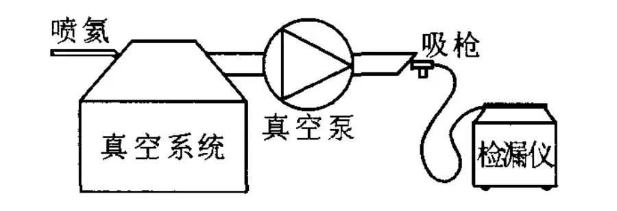 试验中,将高灵敏度氦质谱检漏仪的吸枪架在真空泵排气口;将氦气喷洒到真空系统各个可能发生泄漏的区域,若有漏点,氦气将被负压吸入到凝汽器中,由真空泵抽出,通过排气口排到大气中,吸枪会吸入部分带有氦气分子的气体,检漏仪便会显示出检测到的氦气分子量。