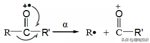 (2)不饱和杂原子:例如羰基化合物的α断裂过程如下: