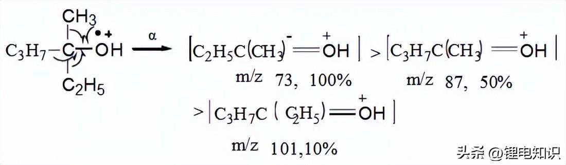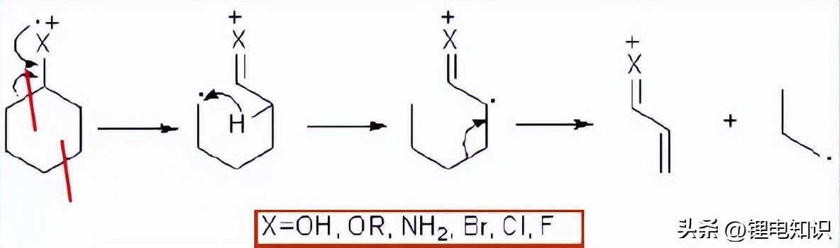 分子失去电子,形成游离基离子,它的电子有强烈的成对倾向,电子转移与邻近原子形成一个新键,同时邻近原子的α键断裂。因此,这种断裂通常称为“α”断裂反应。
