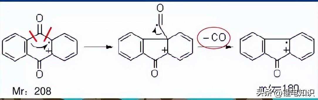 骨架重排是指在有机化合物裂解过程中,部分基团如甲基、芳香基以及含O、N、S等的基团发生迁移,生成一些小的中性碎片、自由基离子等的过程。常见的中性碎片如CO、SO、SO2,S2,CH=CH等。如蒽醌发生芳基迁移,存在下列裂解: