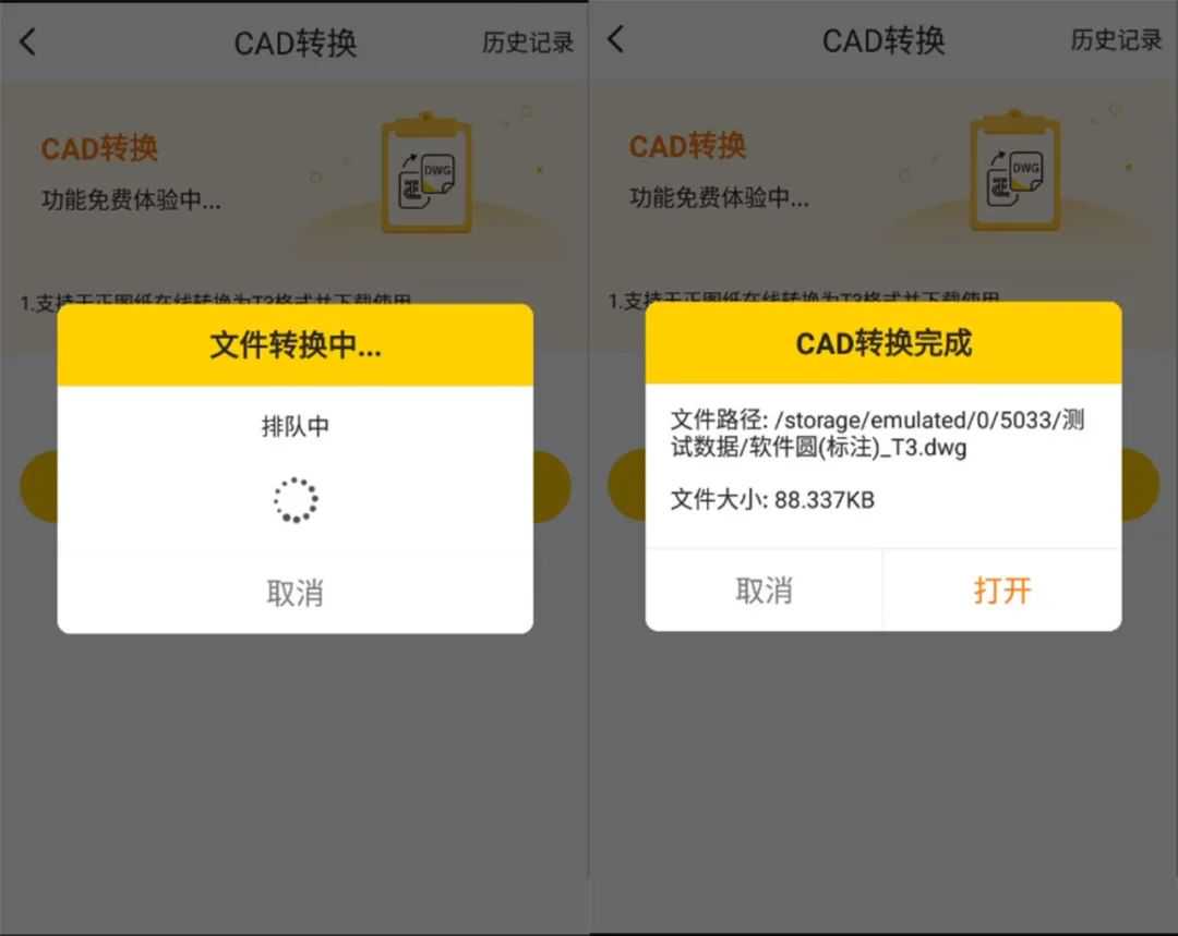 历史记录CAD转换及瘦身功能均支持查看用户3个月内上传文件的历史记录。
