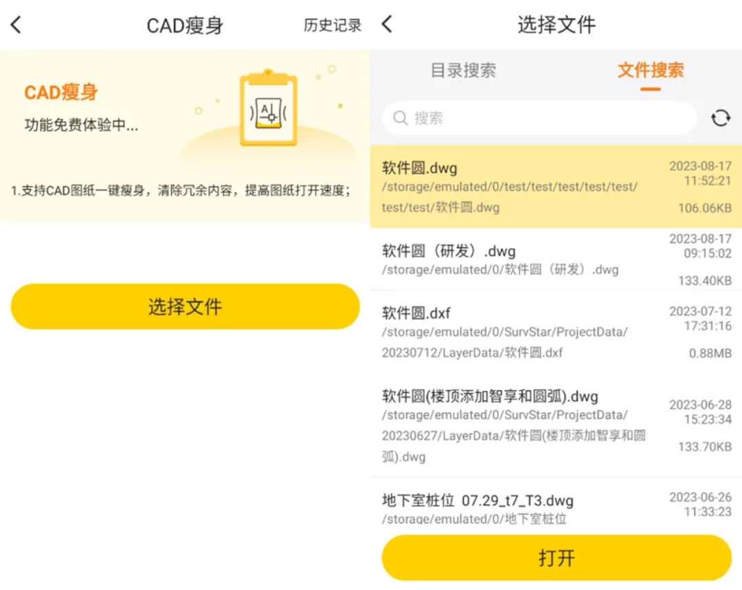 1)入口:【CAD转换/瘦身】-【历史记录】;