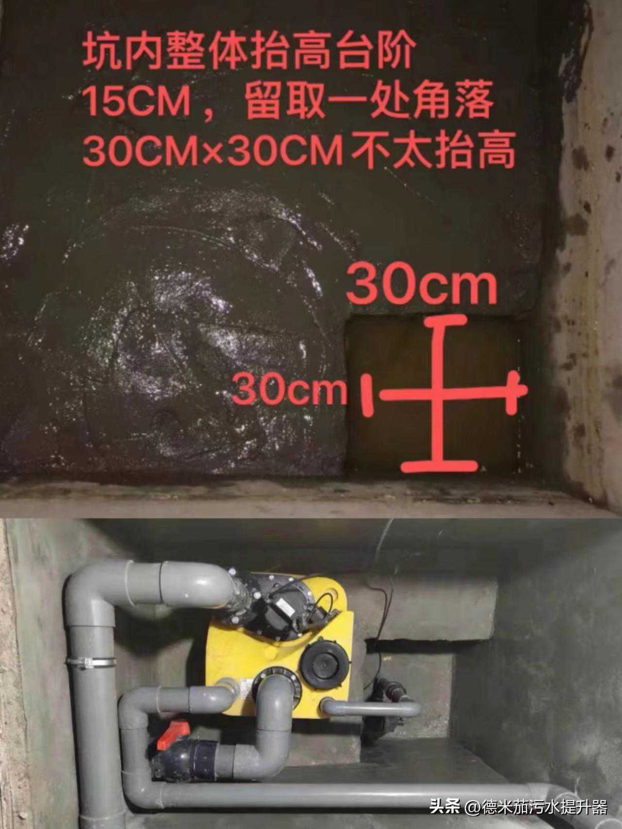 污水提升泵的坑内安装我们需要注意的是,它只能收集管道接入的污水,而无法处理箱体外部的渗水,所以我们还需要配置一台辅泵,坑内相对应的砌一个台阶,留一个30*30mm左右的小落空放置辅泵,这样就不怕坑内积水过多,滋生蚊虫细菌了。