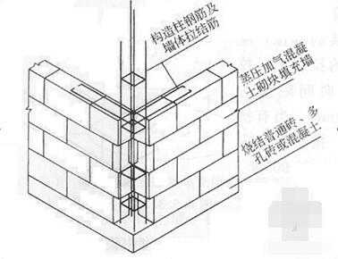 按构造配筋,并按先砌墙后浇灌混凝土柱的施工顺序制成的混凝土柱,通常称为混凝土构造柱,简称构造柱(建筑图纸里符号为—GZ)。一般蒸压加气混凝土砌块和普通砌块都是采用构造柱。