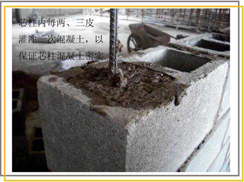 4.芯柱截面不宜小于120mm×120mm,宜用不低于C20的细石混凝土浇灌;