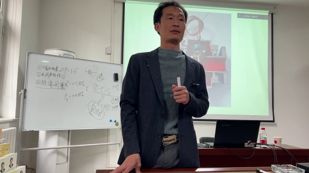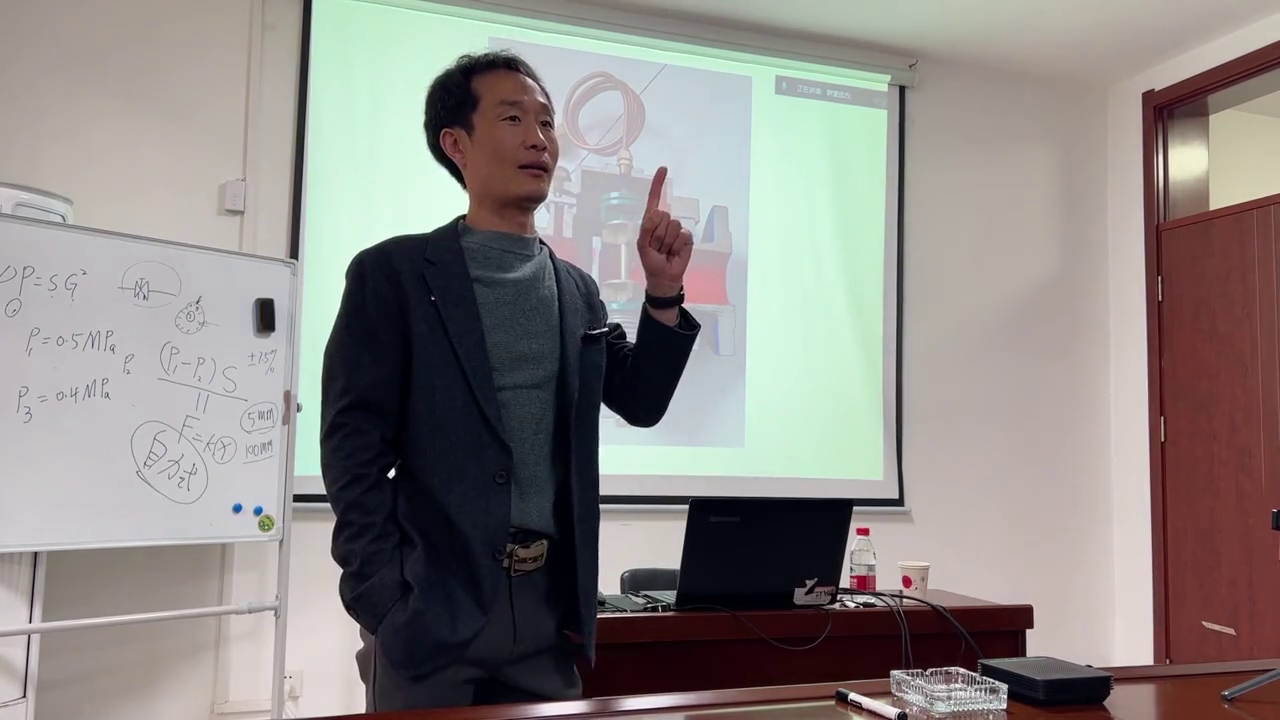 这是压差阀的实物的剖面图,我现在提问了,看看刚才的培训效果怎么样。左边是它的上游还是右边是它的上游?左边是上游还是右边是上游?没事随便说,右边是上游。回答正确。