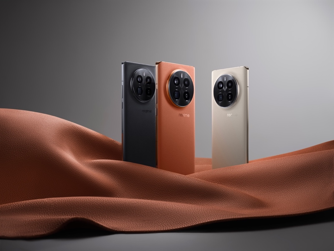 除了稍显暧昧的「赤岩」,真我GT5Pro还准备了同为素皮的「皓月」和采用星闪AG玻璃的「星夜」共三款配色。