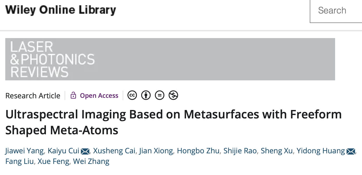 黄翊东、崔开宇团队还进一步提出了基于自由形状超原子(Freeformshapedmeta-atoms)超表面的超光谱成像芯片,可突破规则形状的超表面设计,扩大超表面的参数设计空间,进一步提升光谱成像性能(如图2),在工业自动化、智慧医疗、机器视觉、消费电子等诸多领域具有应用需求。相关成果发表在LaserPhotonicsReviews,论文第一作者为电子系2018级博士生杨家伟,论文通讯作者为崔开宇、黄翊东。