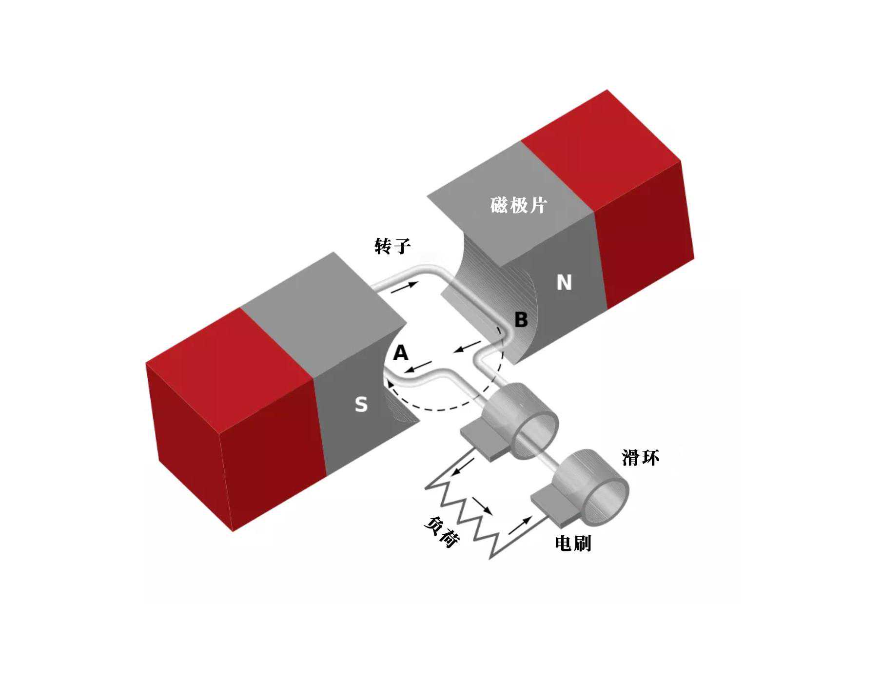 具有电枢和磁铁的交流电动机可视化图