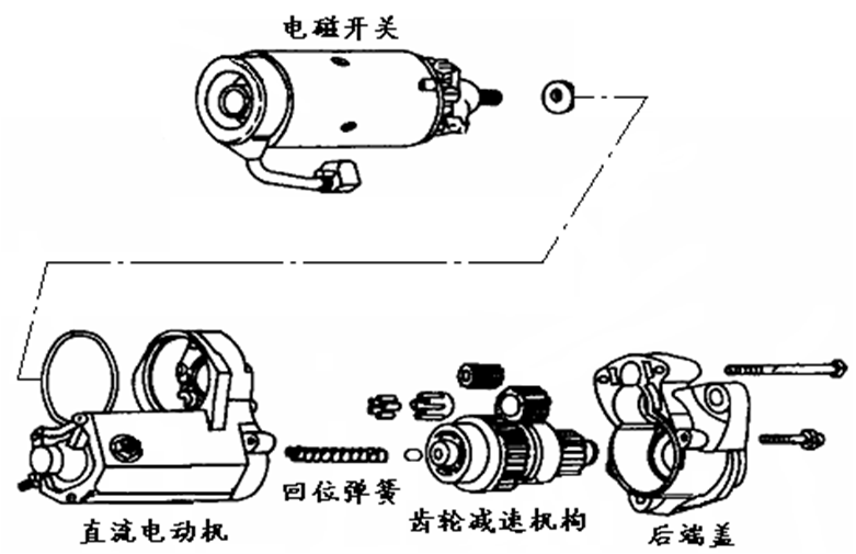 电动机空转—实验电磁开关—短路起动继电器—短路点火开关;