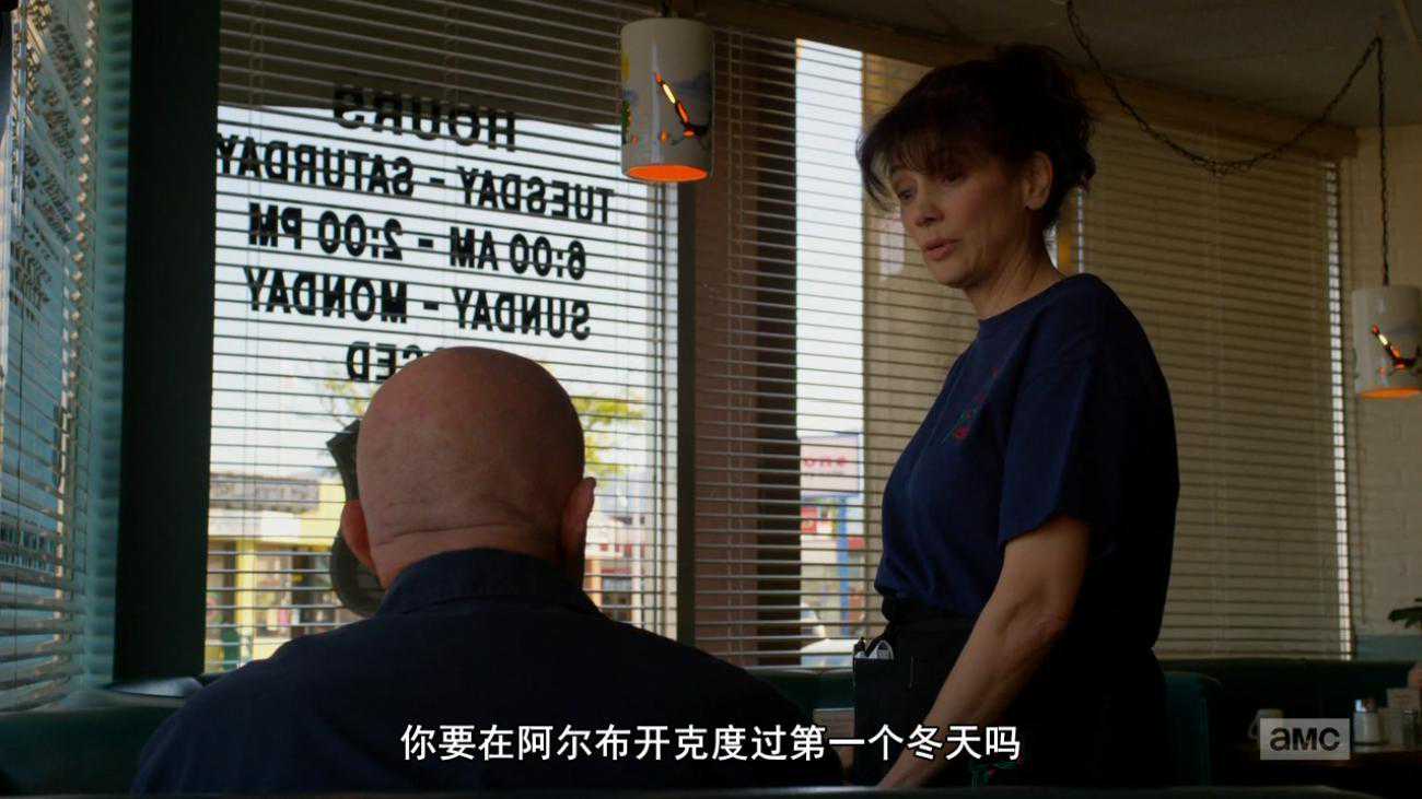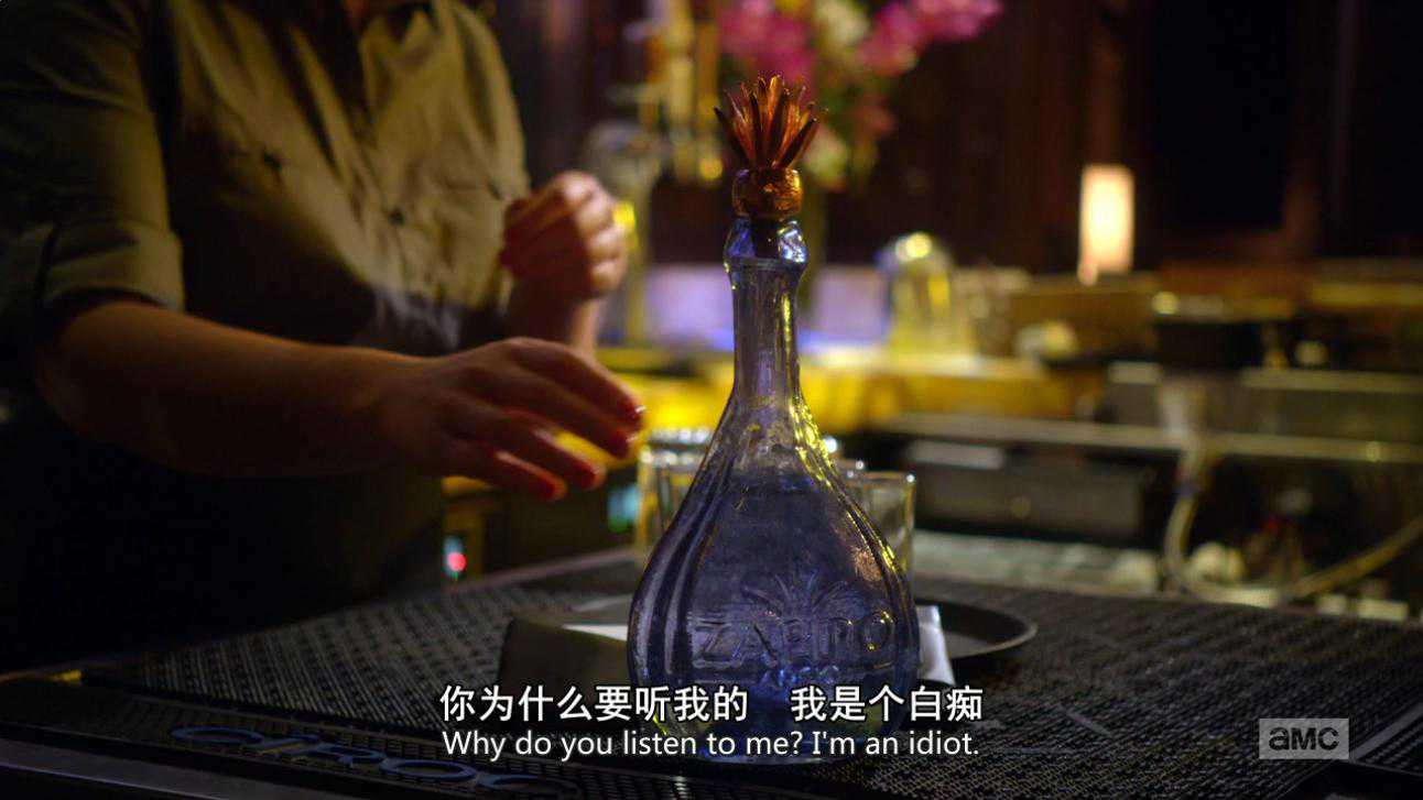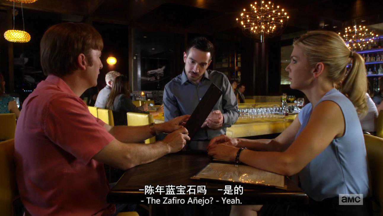 期间Kim来找他谈过一次心,但Jimmy反而带她见识了自己的另一面,两人坑人吃了顿霸王餐,其中包括《绝命毒师》里Gus用来毒杀墨西哥的那瓶龙舌兰酒。