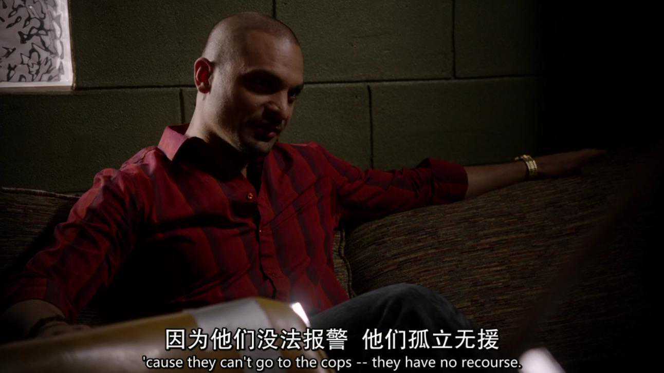 先说Mike,他暗探Hector的运输路线(第八集),并劫了辆卡车,将司机五花大绑,拿了里面的毒资。(第九集)