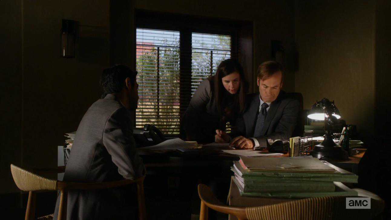老羞成怒的Chuck把文件移交给Kim时拆穿了Jimmy的诡计,但Kim不仅支持Jimmy,而且在当天晚上提醒Jimmy,做戏做全套。