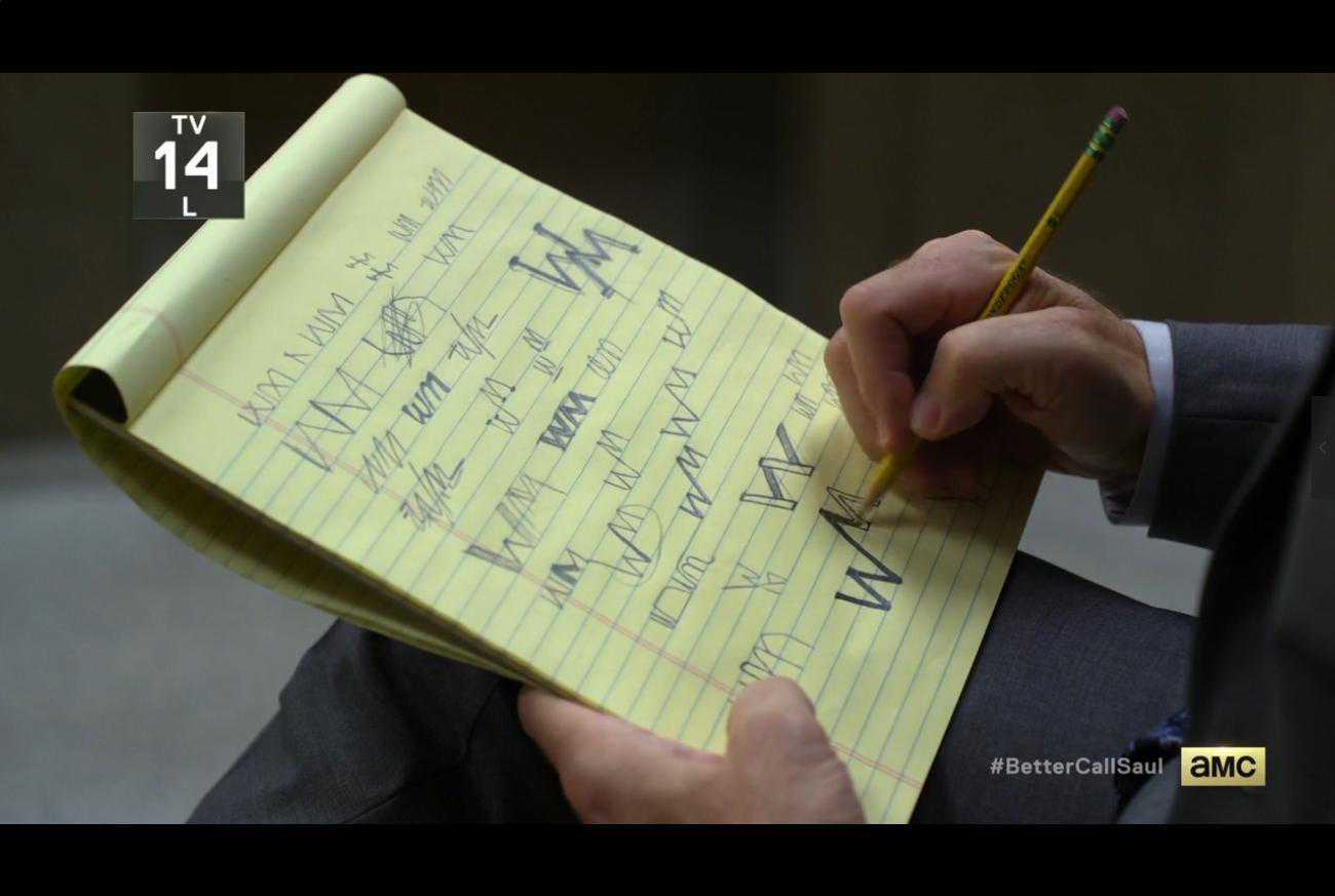 再说Jimmy,第七集的开头他便在设计自己与Kim合伙的logo,准备与她一起办律师事务所。(对比一下第一季,他还抄袭了HHM的商标……)