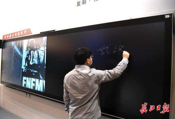 南京欧帝科技股份有限公司展示的智能双屏黑板,具有全屏板书和超宽巨幕播放等功能。