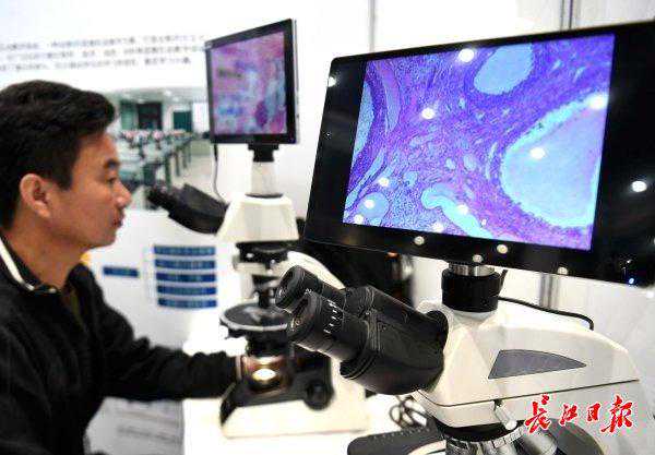 南京江南永新光学有限公司展示的数码电子显微镜。
