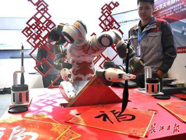 .ABB(中国)有限公司的双臂机器人现场挥毫送“福"。
