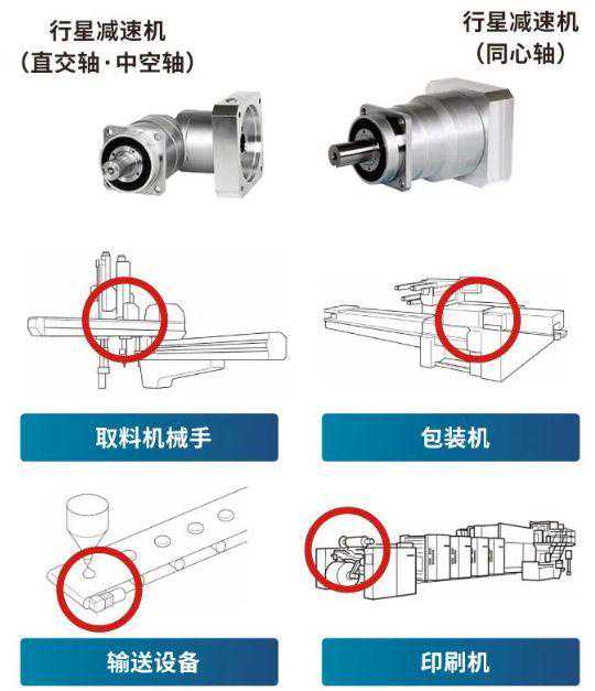 而行星减速机的应用范围却更加广泛,多用于一般工业类产品,如各类印刷机、包装机械、切割机等设备。