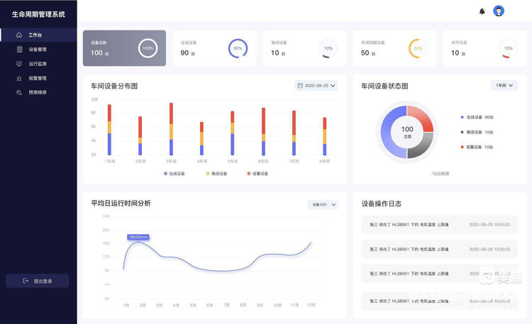智能生命周期管理系统:运用云平台监测技术,将设备运行的重要数据电机温度、胶块温度、设备振幅数据进行24小时在线实时点检,设备运行数据实时搜集处理、及时预警预判。