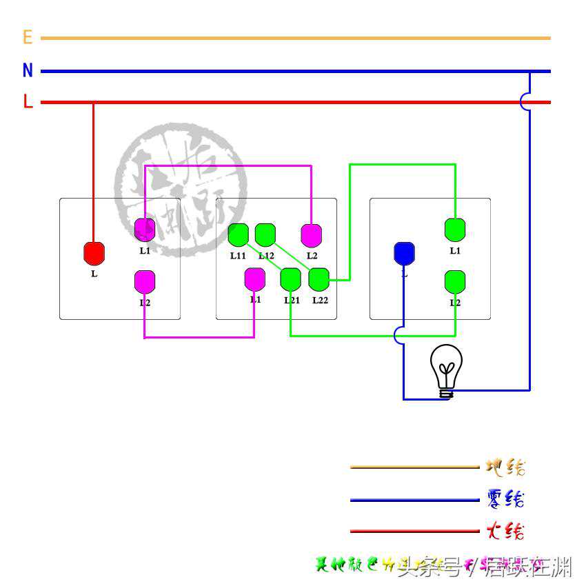 再举个例子,五地控制电灯,就需要3个中途开关和2个双控开关。100地控制,就需要98个中途开关和2个双控开关。