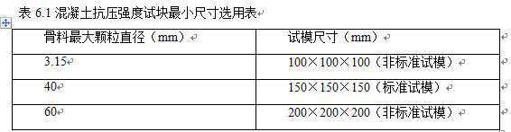 表6.1混凝土抗压强度试块最小尺寸选用表