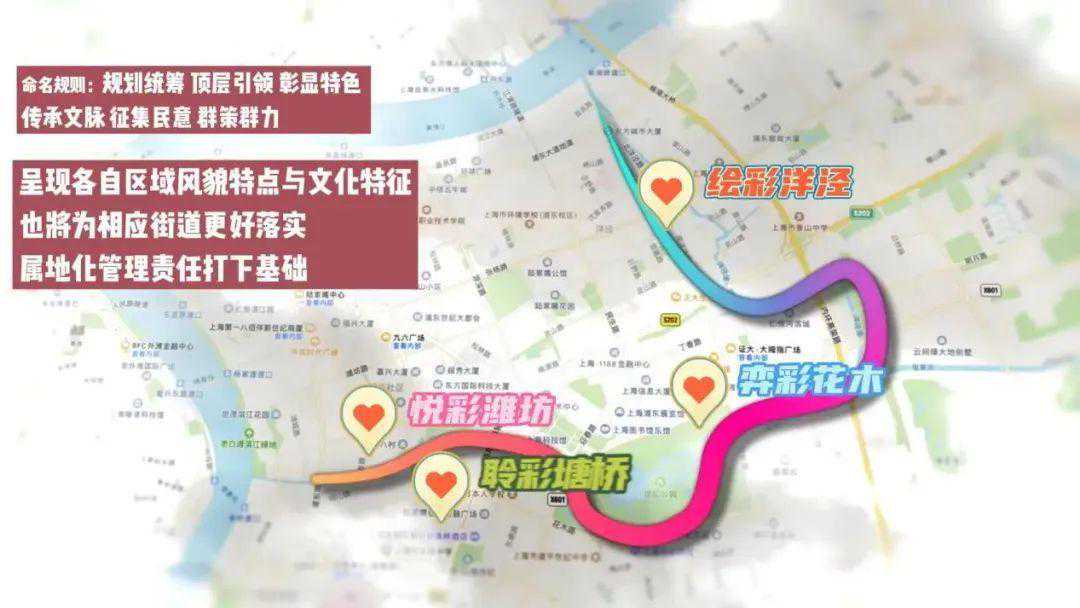 陆家嘴“焕彩水环”二期工程在一期打通堵点断带的基础上进行了品质提升,并且为了呈现打通的四个街道区域的风貌特点与文化特征,在广泛征询市民意见后对陆家嘴水环4个片区进行了命名。