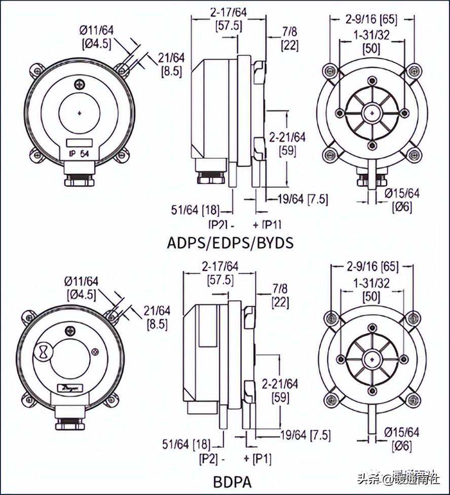ADPS/EDPS/BDPA/BYDS系列可调差压开关设计用于监测风压、正压、真空和差压。设定点调整用的旋钮盘印制有双刻度:英寸水柱和Pa,便于设置设定点。ADPS的量程范围从0.08(20Pa)到20(5000Pa)。硅胶隔膜和主体使得ADPS系列与空气和其他非可燃气体一起使用非常理想。EDPS系列型号符合UL508标准,由密封塑料制成。紧凑的尺寸,调节旋钮和低成本,使ADPS/EDPS成为暖通空调应用的完美选择。