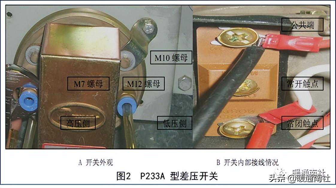 美国J公司的P233A系列差压开关如图1A所示,开关有一透明外罩保护仪表本体,内有一个连续调整设置的旋转开关和以三角方式分布的报警输出接线端,开关下部为报警出线孔,上部为压力输入接口。