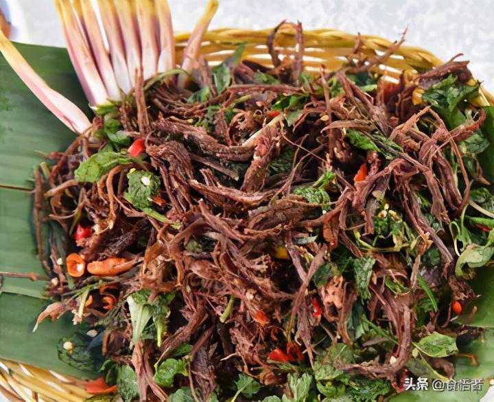 所有烹饪专业的教科书,都无法找到关于菜肴制作方法“舂”的相关阐述,而这种古朴独特的菜肴制作方法,确实存在于云南很多地区的少数民族家中。生活在德宏傣族景颇族自治州的景颇族,有句民间谚语“舂筒不响,吃饭不香。”景颇山寨,家家都有一个舂筒,每顿饭都有舂菜,舂菜的响声,暗示着美味即将出炉;生活在这一区域的德昂族的“捣菜”,只是“舂菜”的另一种说法而已。哀牢山下彝家人的“舂鸡”也是让人欲罢不能的美食;还有来自西双版纳傣家特色美食——柠檬舂鸡脚,也总让我们垂涎欲滴