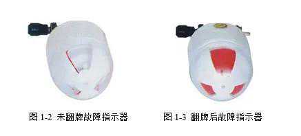 图1-2所示,是正常供电时未翻牌的故障指示器。图1-3所示,是线路发生故障时翻牌后的故障指示器。